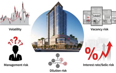 Conheça os principais riscos de investir em FIIs: volatilidade, vacância, gestão, Selic e diluição. Exemplos práticos e cenário atual.