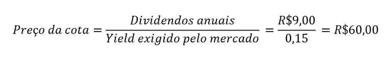 Suponha um FII que distribui R$ 9,00 anuais de dividendos por cota.